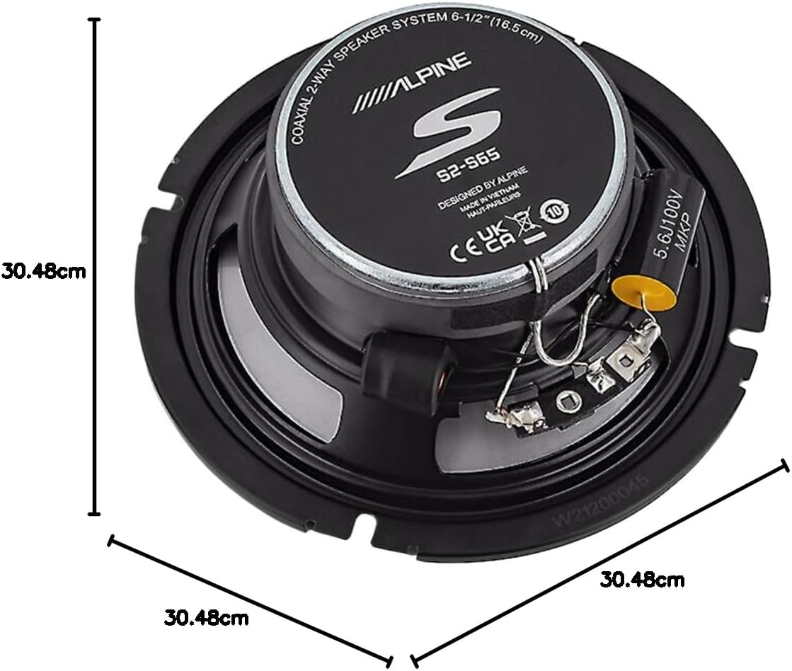 Introducing the Alpine S2-S65 speaker, a 6.5” coaxial 2-way car speaker designed to deliver clean, powerful sound. This Hi-Res Audio Certified unit handles up to 240W peak / 80W RMS for room-filling bass and detailed highs.