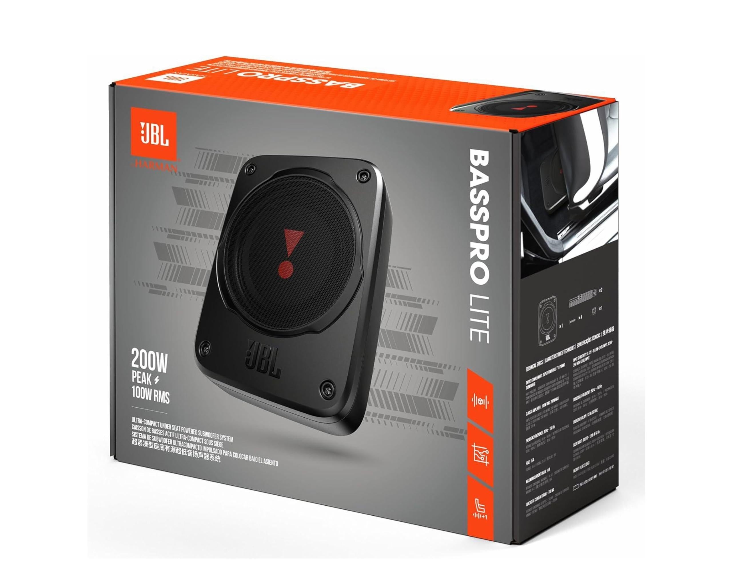 Compact and powerful, the JBL BassPro Lite delivers deep, accurate bass in a space-saving design ideal for under-seat or tight vehicle installations.