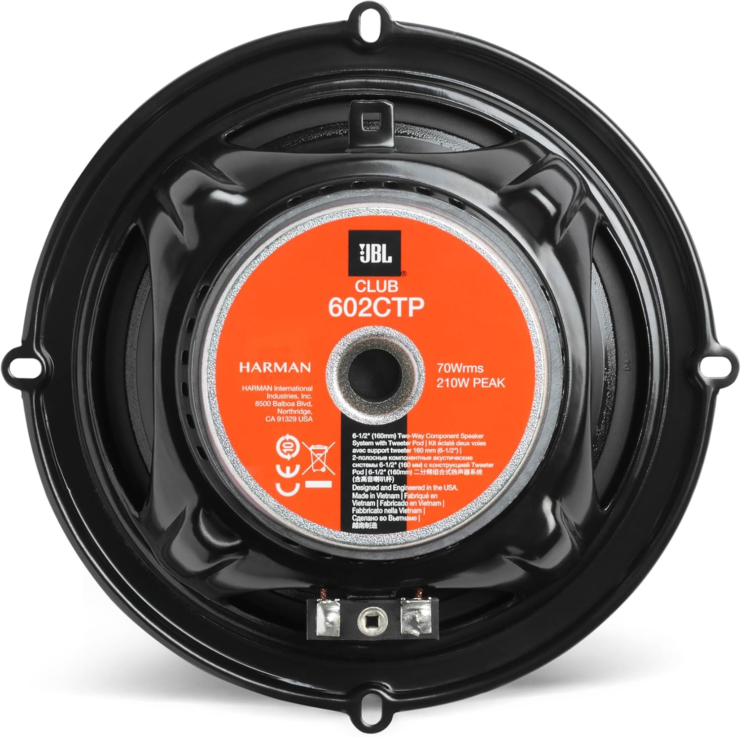 Upgrade your vehicle audio with the JBL Club 602C component speaker system. With 210W peak and 70W RMS power, it delivers clean, balanced sound with excellent clarity and precision, ideal for audiophile-quality in-car listening.