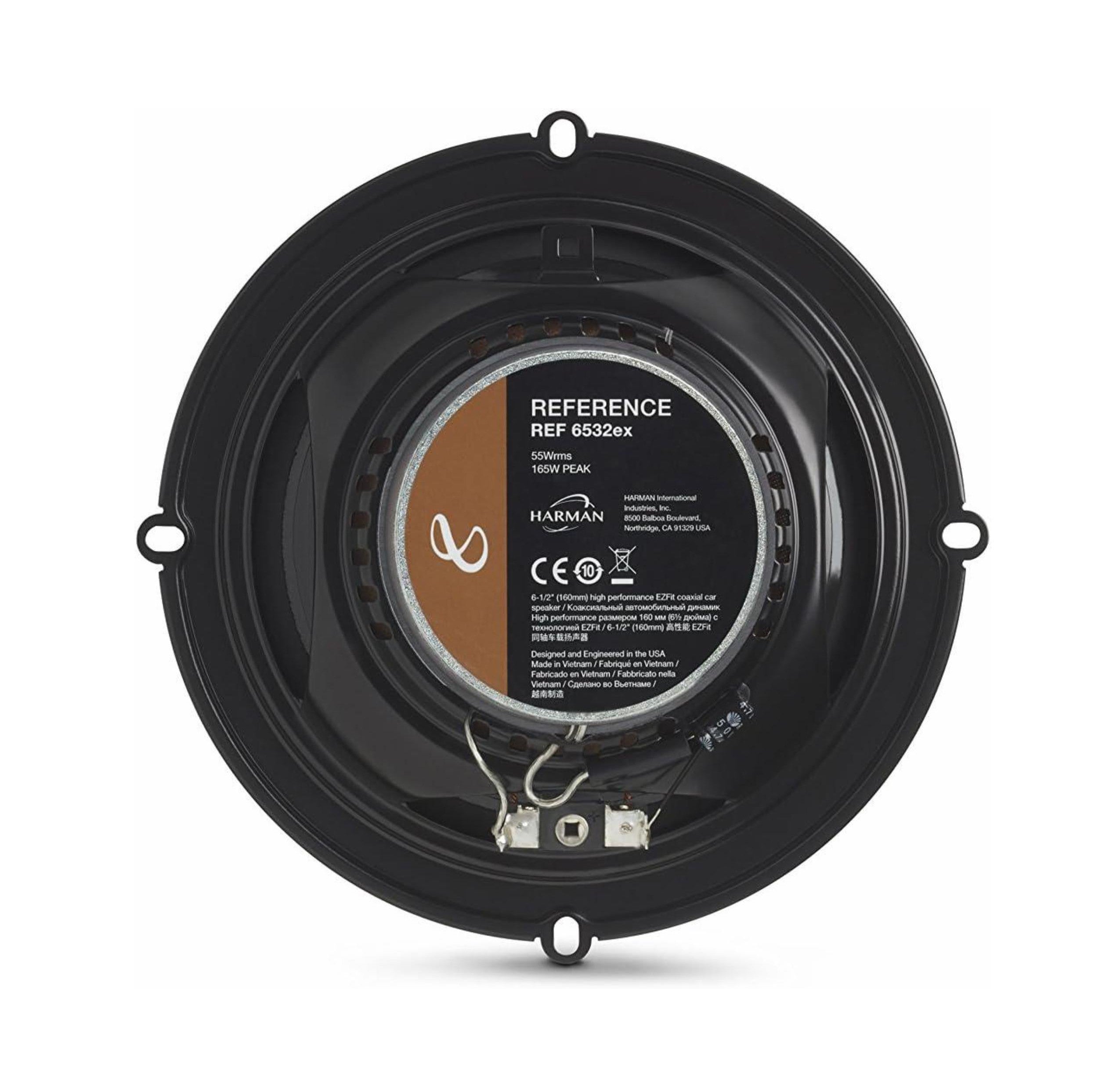Bring your music to life with the Infinity REF-6532EX 6.5-inch speakers. Offering a dynamic range and powerful performance, they deliver rich mids and crisp highs. Designed with a slim profile to fit most cars, these speakers use edge-driven textile tweeters for superior clarity and balanced sound at all volumes.
