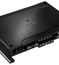 The Kenwood X802-5 is a high-performance Class D 5-channel amplifier designed for full-range and subwoofer applications, delivering up to 1600W max power with support for high-resolution audio.