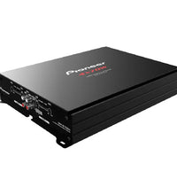 The Pioneer GM-E7004 is a 4-channel Class AB bridgeable amplifier with a maximum power output of 1000W, designed for flexible car audio setups with enhanced bass control and clean sound.