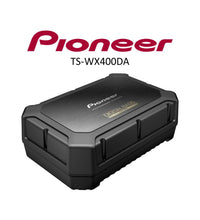 The Pioneer TS-WX400DA is a compact active subwoofer with a built-in Class-D amplifier delivering up to 250W max and 100W RMS, ideal for under-seat or space-limited installations.