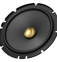 The Pioneer TS-A1608C is a 6.5" 2-way component speaker system with an external crossover, delivering 350W max power and 80W RMS, designed for high-performance automotive sound with deep bass and crisp highs.