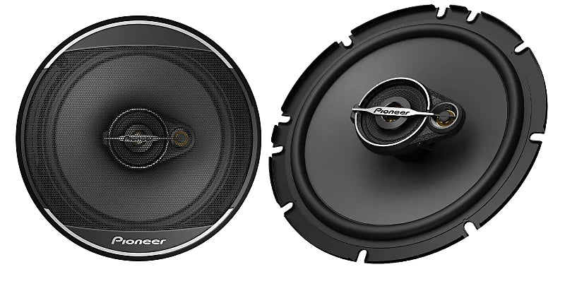 The Pioneer TS-A1678S is a 6.5" 3-way coaxial speaker from the A-Series, delivering 320W max power and 70W RMS, designed for rich bass, crisp highs, and smooth sound transitions in automotive audio systems.