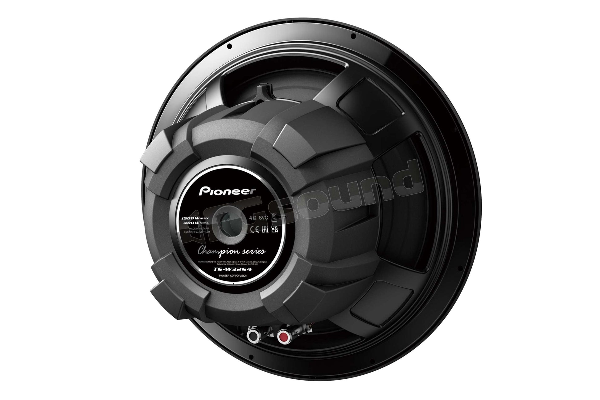 The Pioneer TS-W32S4 is a 12” Champion Series subwoofer with 1500W max power and 400W RMS, designed for deep, punchy bass and high durability in custom car audio setups.