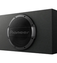 The Pioneer TS-WX1010LA is a 10" active subwoofer with a built-in Class D amplifier, delivering 600W max power and 300W RMS, designed for deep bass in compact vehicle spaces.